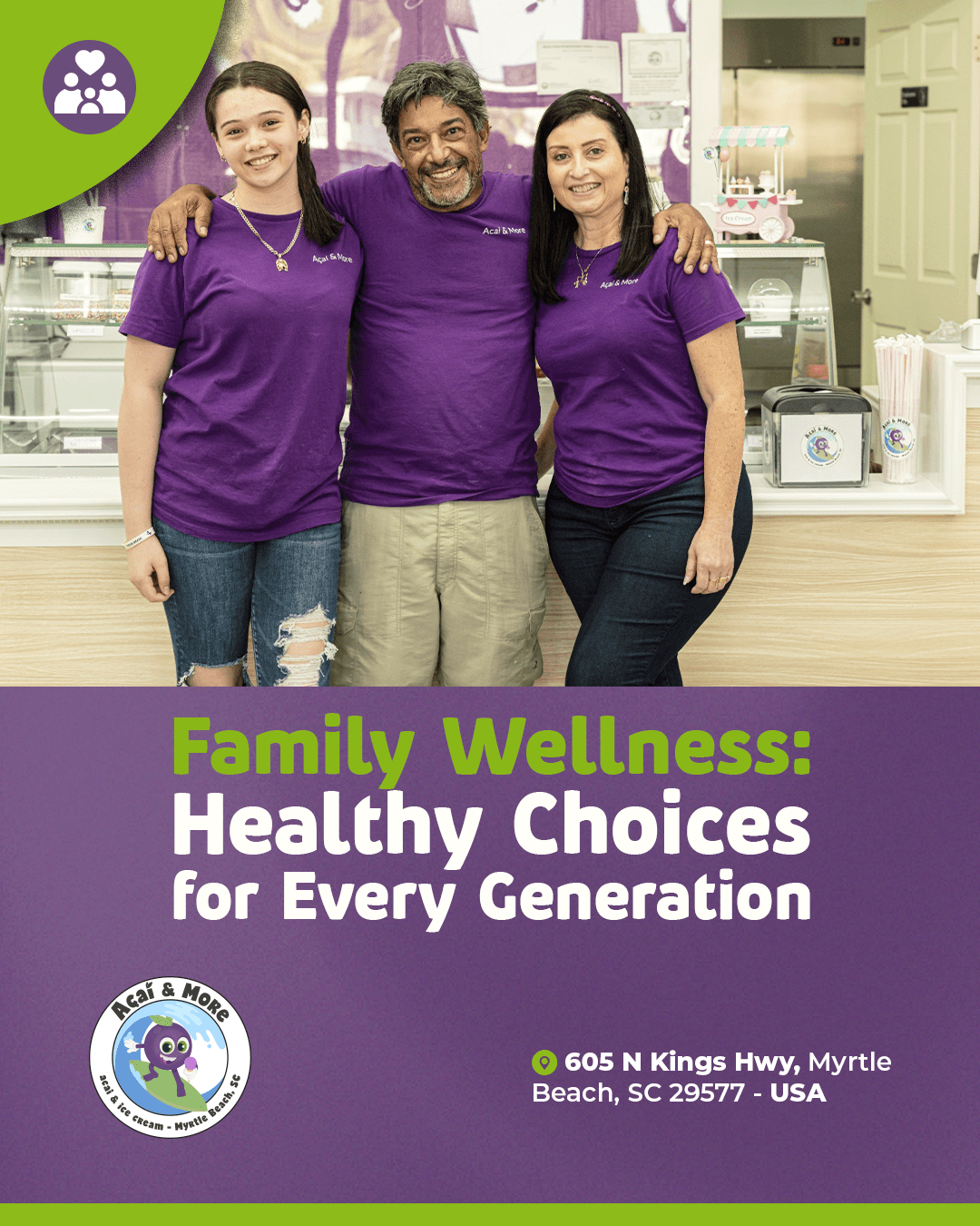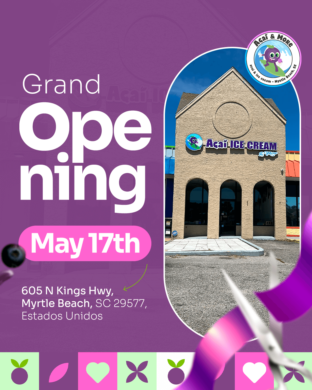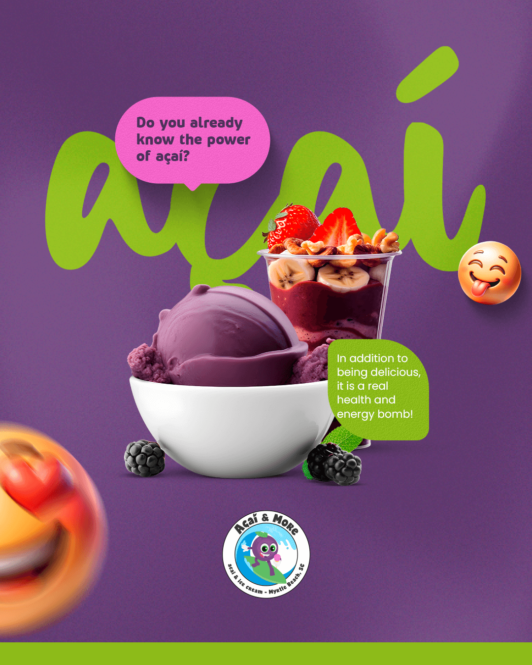 Whether it’s our creamy açaí topped with fresh fruits, crunchy granola, and superfood boosters, or a scoop of our irresistible ice cream in a variety of flavors, each option is made with care and quality so you can feel good while enjoying something extraordinary.