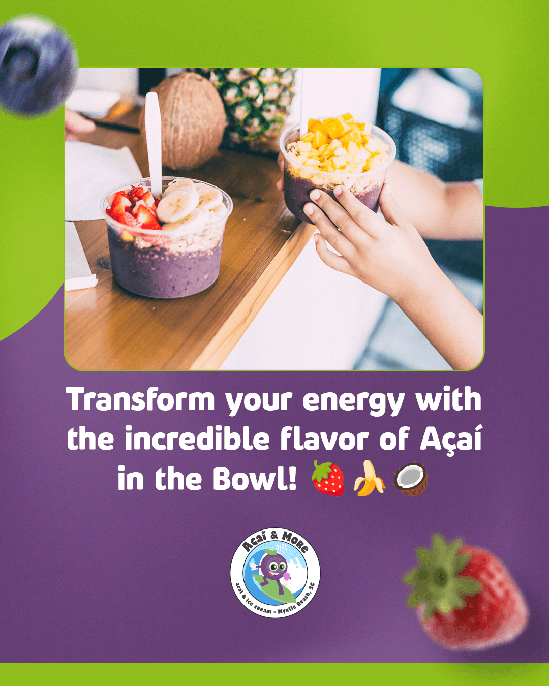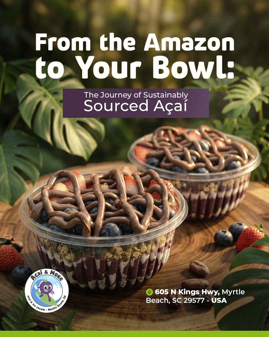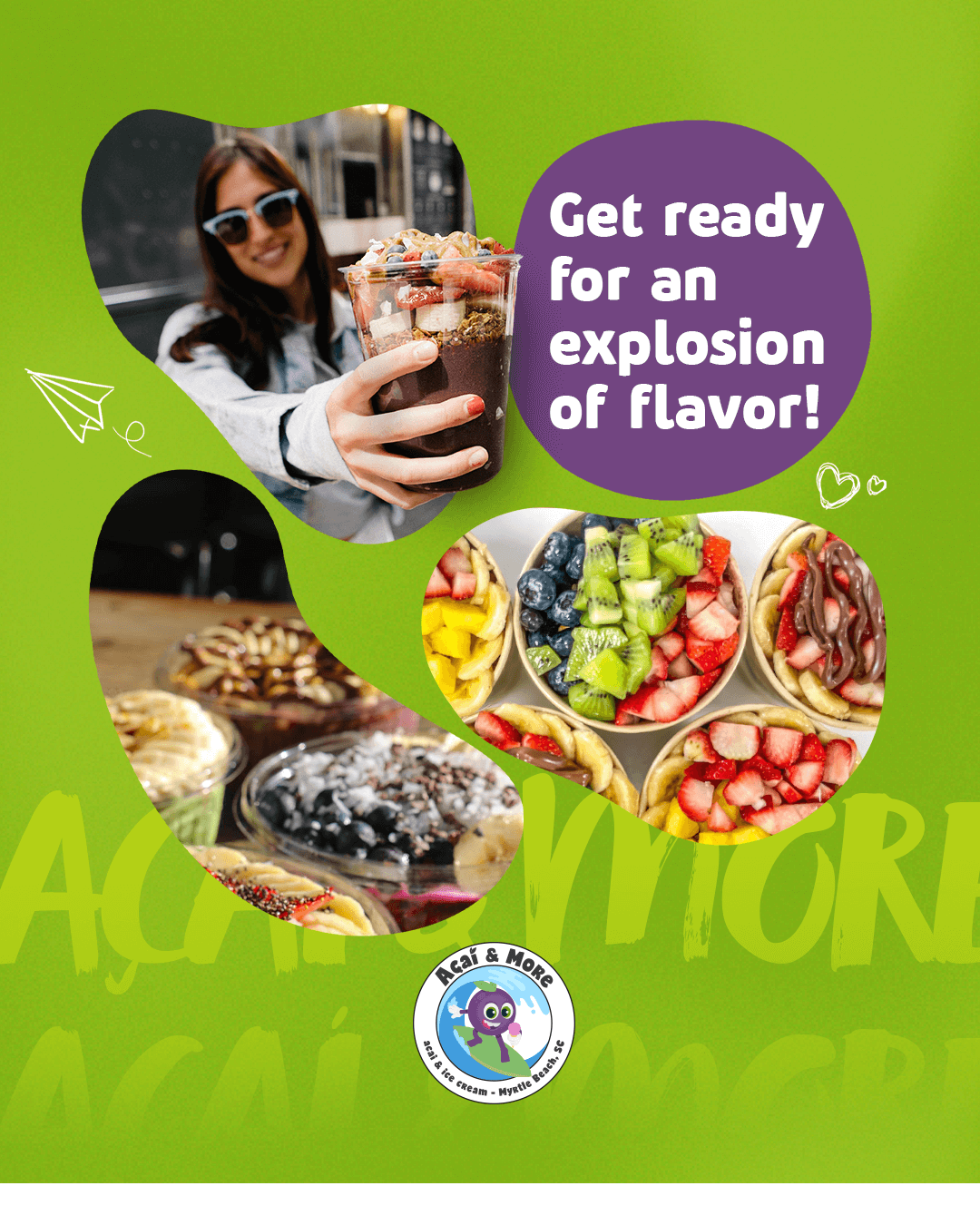 Our mission? Deliver energy, flavor, and well-being in every scoop or mouthful. Açaí & More is where health and taste go hand in hand — a delightful haven to recharge and savor life’s little pleasures.