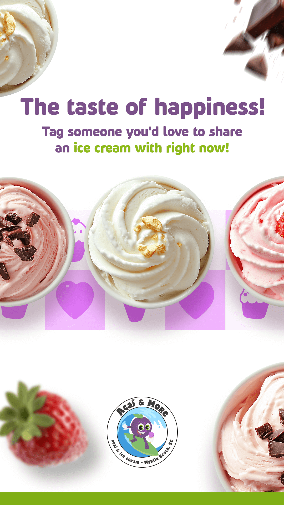 At Açaí & More, we believe healthy food can (and should!) be both delicious and joyful. That’s why we offer much more than açaí bowls — we also serve handcrafted, refreshing ice creams that are perfect for any moment.